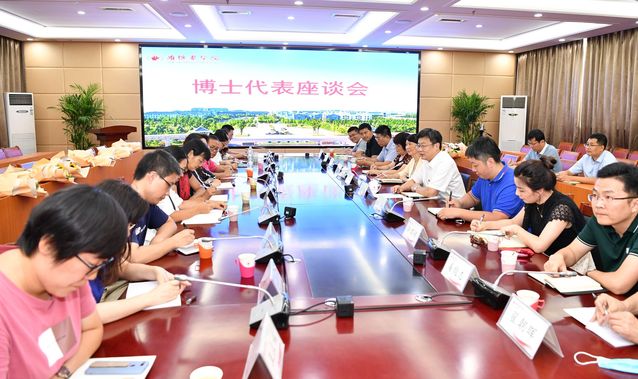 座谈会上,学校向参会博士们献上了祝福鲜花。来自各学院的18名博士代表直抒胸臆,畅谈了来校工作的体会与收获,分享了对学校给予自身发展成长帮助的感激之情,同时围绕学校人才培养、教学科研、管理服务等提出意见建议。