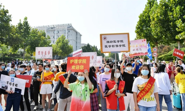 9月20日,潍坊医学院校园内洋溢着欢快、和谐、喜庆的气氛,来自五湖四海的3000余名新同学,怀揣医学梦,齐聚潍坊医学院,为这所有着70年光荣历史的医学院校增添了朝气蓬勃的青春力量,带来了崭新气象与活力。