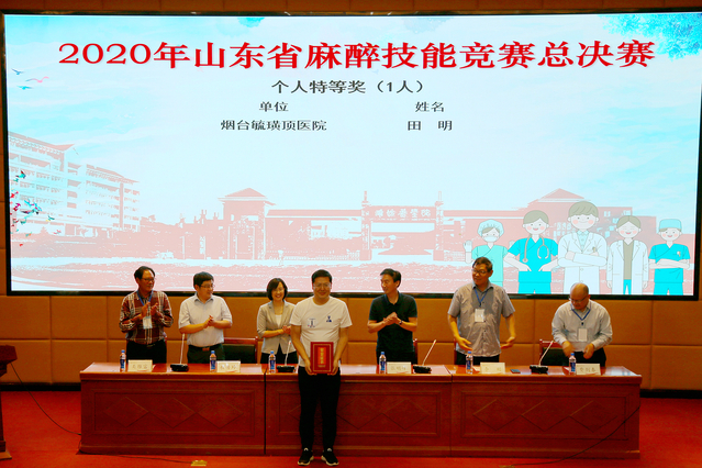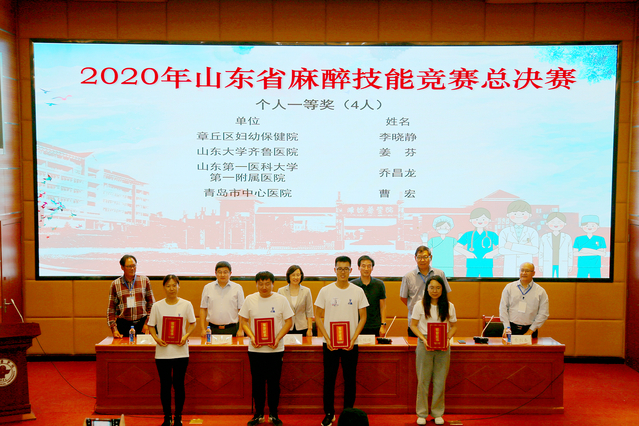 决赛评出了个人奖和团体奖。总决赛选手均为山东省各地市、直属大学和军队医疗机构中进行初赛选拔的前三名,其中我校麻醉学专业本科毕业生占53%,2001届毕业生田明获得个人赛特等奖,个人赛前十名中8人本科毕业于我校麻醉学专业。