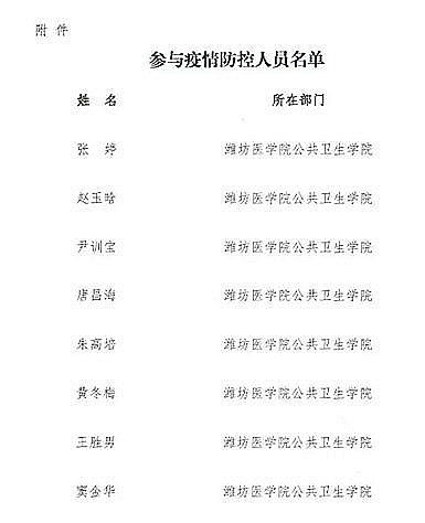 在此次抗击新冠肺炎疫情中,我校公共卫生学院共派出8位博士研究生:张婷、赵玉晗、尹训宝、唐昌海、朱高培、黄冬梅、王胜男、窦金华,赴中国疾病预防控制中心参与疫情防控工作。他们夜以继日奋战抗击疫情,以精湛的技术和忘我的精神,筑起了一道守护人民生命健康的坚强防线,用实际行动诠释了“自强不息、锐意进取”的潍医精神,践行着自己最初的誓言“做乐道之人,修济世之为”。