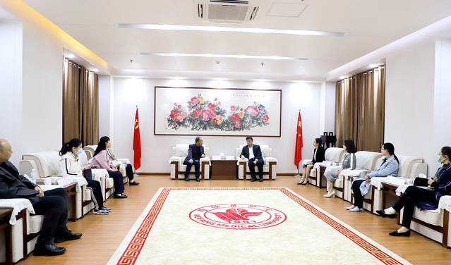 刘军代表学校对丛宁一行表示欢迎,并简要介绍了学校办学历史和发展情况,希望双方加强交流与合作,促进彼此更高质量发展。