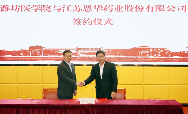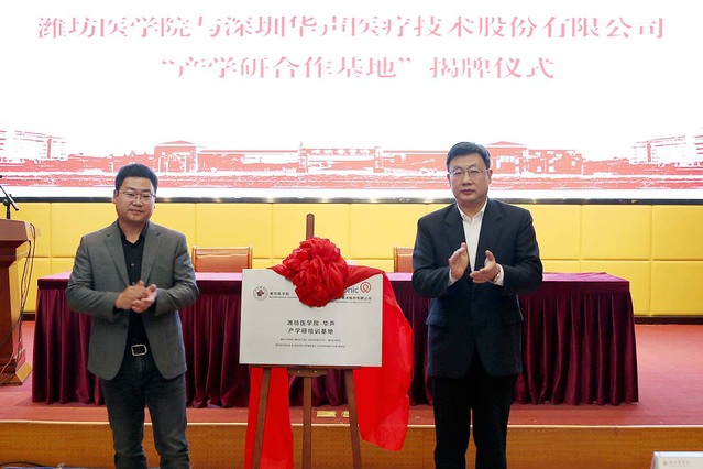 开幕式上举行了签约仪式。刘军代表学校与江苏恩华药业、深圳华声医疗技术公司进行了签约和产学研基地揭牌仪式。