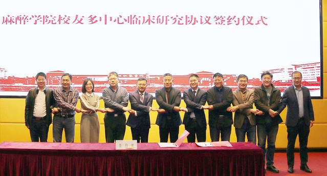 会上还进行了多中心临床研究合作签约仪式,济南、青岛、潍坊等多地校友所在医院参与,旨在发挥学校与校友所在医院优势,合作共赢,促进麻醉学科研和成果转化。