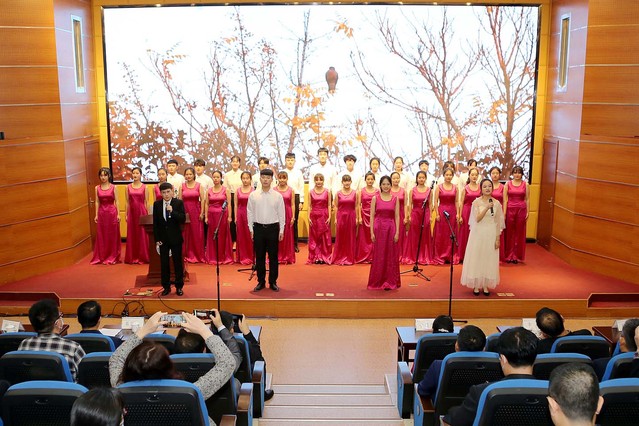 开幕式最后,麻醉学院吉祥物“麻小宝、醉小妹”与现场来宾互动,大家共同欣赏了由麻醉学院学生演唱的麻醉学院院歌《妙手仁心 守望生命》。
