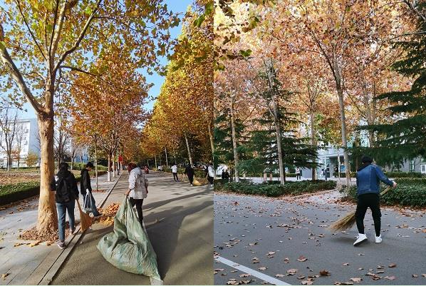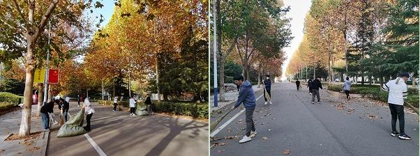 11月7日下午,麻醉学院青年志愿者与环卫工人一道清扫校园内杏林路上的落叶,积极开展校园文明宣传,减少大量落叶造成的地面污染,确保校园内环境卫生、干净、整洁。