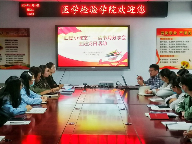 11月18日,医学检验学院学生党支部“四史小课堂暨读书月分享会”主题党日活动在22426室举办。