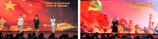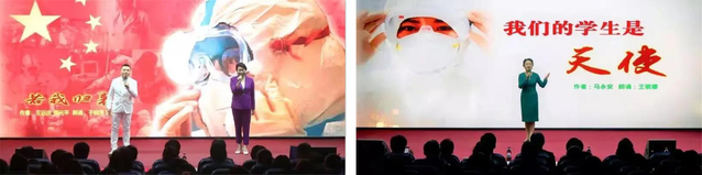 朗诵会以中外学生代表朗诵的原创诗歌《梦想从潍医起航》开始,慷慨激昂的朗诵声中传递出的是潍医人“乐道 济世”情怀和潍医学子筑梦脚下,成才报国的追求;《月光下的中国》,讲述了祖国的美好;反映抗日战争时期的一段凄美爱情的《战地绝恋》《魂兮归来》,再现了革命先烈们抛头颅、洒热血的革命英雄主义精神;《挺直我们的脊梁》则让现场观众从诗歌中汲取了砥砺前行的力量。面对新冠疫情,潍医人敢于担当,甘于奉献,诗歌《我们的学生是天使》用潍医老师的视角,分享了在席卷全球的新冠肺炎疫情下,那些勇敢逆行的潍医人和他们的抗疫精神;原创作品《医者》则用歌曲的形式,展示了潍医人危难之时前赴后继、为国奉献的澎湃激情。《若我归来》《理想》《如果没有李白》,一首首诗歌,或高亢、或深沉,都在饱含情愫的吟诵中传递出诗歌的美、时代的力量。《祖国啊我亲爱的祖国》所迸发出的爱国热情点燃了现场的气氛。在大学生合唱团、青马工程学员代表《共和国之恋》歌声中,诗文朗诵会圆满落幕。朗诵会上,潍坊朗协的朗诵名家和我校师生共同为大家奉献了一场激荡人心的演出,在感动中接受灵魂洗礼,在诗意中体会家国情怀。
