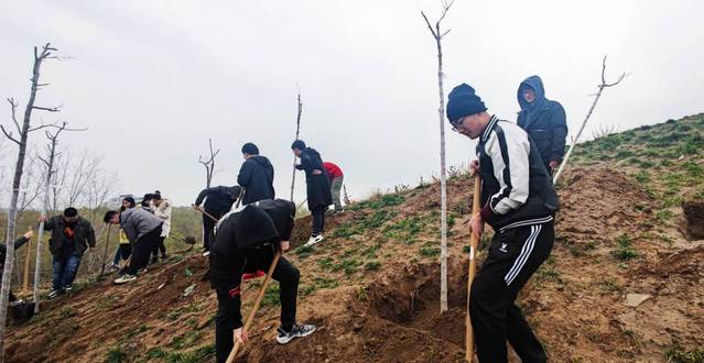明媚阳光里,大家挥锹挖坑、种苗培土,一边劳动一边相互提醒植树注意事项,同学们不怕脏、不怕苦、不怕累。很快,一棵棵树苗迎风挺立,劳动成果展现在眼前。栽下一棵树,留下一片绿。在这里栽下的每一棵树,未来将变成一片烙下无数成长故事的青春之林,一片承载莘莘学子梦想的希望之林。