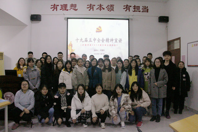 卢国华从全会概况、社会主义现代化远景目标、高等教育面临的新形势新阶段、精准把握二O三五年远景目标和“十四五”时期发展重点任务等向同学们介绍了全会的精神。同时,卢国华结合护理学专业实际,结合自身求学经历,向同学们阐述了作为一名医护工作者如何坚守自己的初心、使命,如何用习近平新时代中国特色社会主义思想和全会精神指导自己的思想和行动实践。她对同学们提出三点要求,一是要做新时代有理想的青年,要把自己人生理想融入国家和民族的事业中;二是要做新时代有本领的青年,要自觉加强学习,不断增强本领;三是要做新时代有担当的青年,要勇于实践,善于实践。