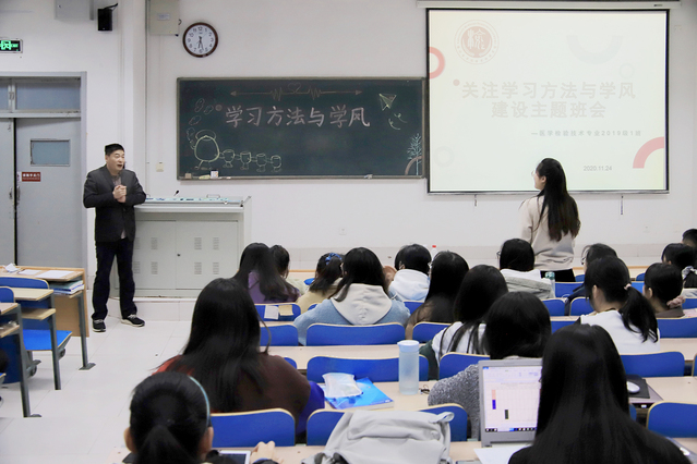 11月24日,医学检验学院党总支副书记、院长伊正君教授参加所联系的2019级1班“关注学习方法与学风建设”主题班会活动。