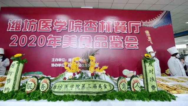 在活动展区,惟妙惟肖的花拼及雕刻造型成品吸引了众多师生的围观和摄影留念。用南瓜雕刻的两条腾飞的巨龙,寓意着学校各项事业发展蒸蒸日上,在巨龙的两侧是用冬瓜雕刻的本次活动的主题“厉行节约、反对浪费”。所有展示的面点、糕点及各种菜品全部采用小份制,积极倡导节约用餐新风尚。