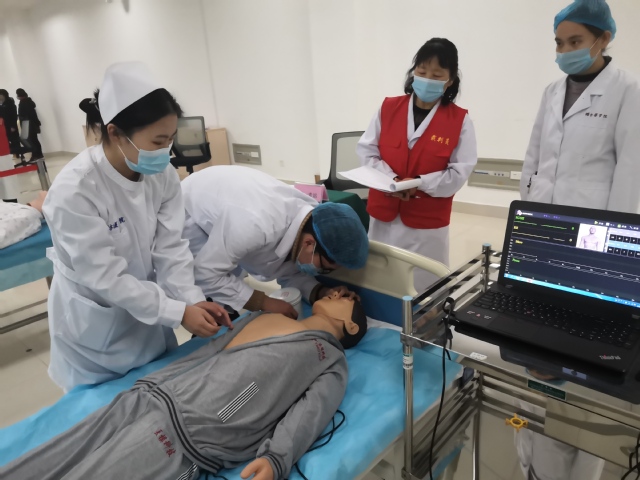 本次大赛由实验实训部和南京览众智能科技有限公司承办,分各专业选拔赛和跨专业团体赛。选拔赛共有临床医学、麻醉、护理三个专业400余名学生参加,专业选拔赛共涉及竞赛项目30余项,选拔赛后共有60名学生进入跨专业团体赛;团体赛采用“三三一”组队形式,即由临床医学、麻醉、护理三个专业、三名学生组成一个团队,共有20个团队,以团体协作形式进行8项临床综合技能比赛项目。