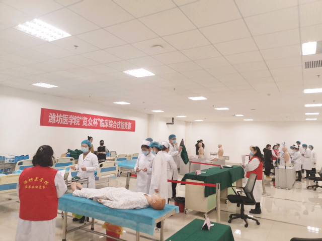 12月16日,潍坊医学院第一届“览众杯”临床综合技能团体决赛在医学实验实训中心举行。