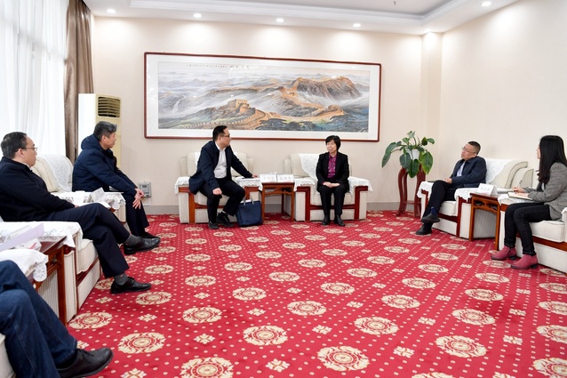 12月18日下午,潍城区委副书记李全吉,潍城区委常委、宣传部部长武法栋一行5人来访我校。校党委副书记张潍华在办公楼六楼接待室会见并进行座谈交流。