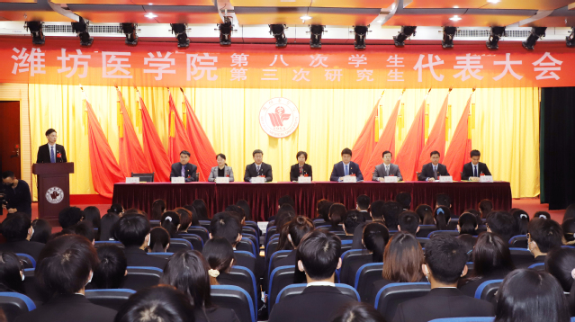 12月19日,潍坊医学院第八次学生代表大会、第三次研究生代表大会在浮烟山校区召开。学校党委副书记张潍华,共青团潍坊市委书记赵中国,副院长刘军、张建华出席开幕式。参会嘉宾与学生代表共聚一堂,汇集青春风采,聚焦青春盛会。