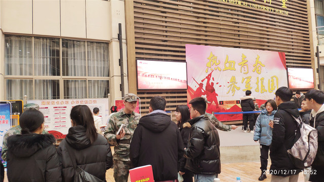 潍坊医学院2020年圆满完成征兵任务,取得历史好成绩。2021年征兵工作首次实施“两征两退”,面对新情况、新形势,我校将调动一切力量,开展征兵动员,为应征入伍学生做好宣传、教育、服务工作。