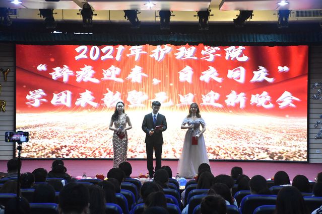 12月22日晚,护理学院于图书馆演播厅举办“辞疫迎新,白衣同庆”学团表彰暨元旦晚会。党总支书记刘汉波、党总支副书记于颖荣、副院长孟庆慧、学院教师代表及全体同学带着对新一年的祝福齐聚一堂,共庆元旦佳节。