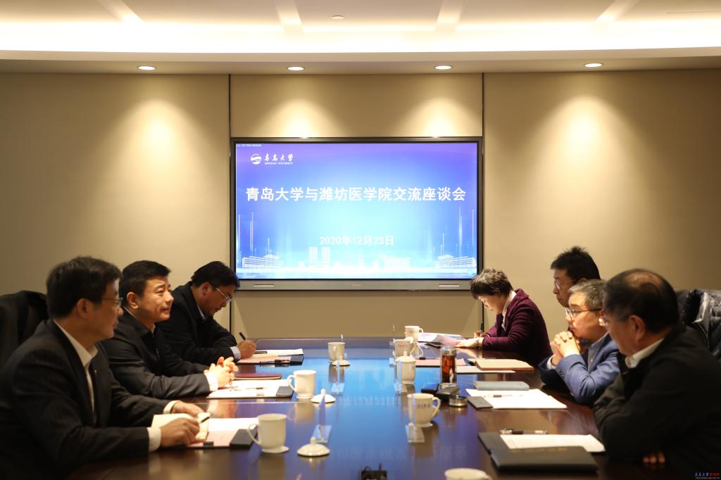 12月23日,学校党委书记李明、副院长刘军在学校有关部门负责人陪同下,到青岛大学考察交流。青岛大学党委书记胡金焱、校长夏东伟、副校长于永明会见李明一行,双方就医学教育一体化高质量发展联盟(以下简称“联盟”)建设进行座谈交流。