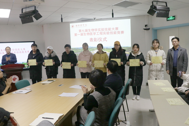 12月24日,生命科学与技术学院在11442学术报告厅,对学校第七届生物学实验技能大赛、第一届生物医学工程实验技能竞赛优秀学生进行表彰。学校副院长张建华出席并讲话,校团委书记吴周强、生命科学与技术学院班子成员及师生代表80余人参加。表彰仪式由学院党总支书记李向辉主持,出席仪式的领导为获奖学生颁发了荣誉证书,2018级生物技术专业路琨代表获奖学生发言。