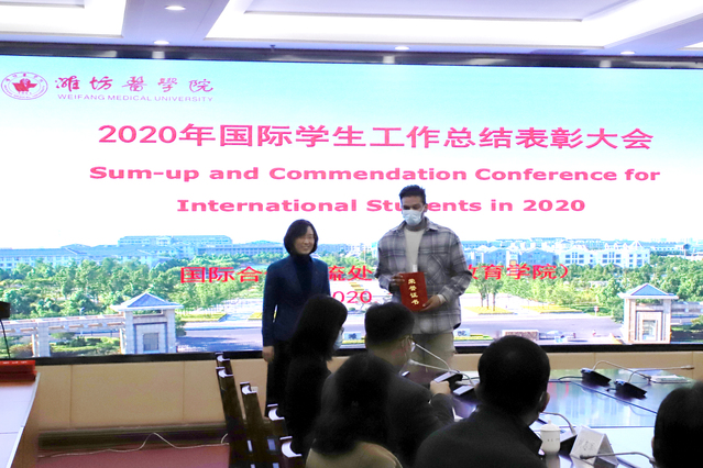 大会对获得国际学生抗疫友好大使、山东省政府外国留学生全额奖学金、山东省政府外国留学生优秀学生奖学金、学校“十佳国际学生”“十佳国际学生干部”、优秀班集体等个人和集体进行了表彰。