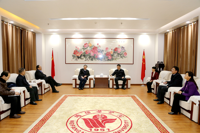 1月21日下午,潍坊学院党委书记李东、院长冯滨鲁一行4人来校访问交流。校党委书记李明、院长管英俊会见客人并进行座谈交流。