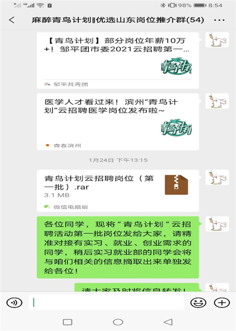 青鸟计划在行动。麻醉学院团总支积极响应校团委号召,以青鸟计划为平台为学生提供实习、就业岗位,通过提前摸排学生就业情况,建立青鸟计划岗位推介群,精准推送岗位信息,组织指导同学们积极参与;2019级苏佳乐通过青鸟计划实习岗位推荐加入当地老干部局开展实习工作,扎根基层,服务群众。