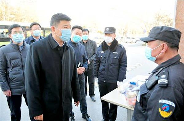 李明一行先后走访虞河校区北门、换热站、中心配电室和附属医院,检查疫情防控和安全生产工作。