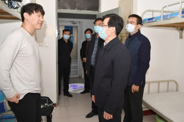 2月27日,我校迎来2021年春季学期返校学生。校领导班子成员李明、管英俊,张潍华、孙宏伟、葛国文、刘军、田艳玲、张建华、卢国华、王承高、梁淑娟、田玉胜等带队分别在浮烟山校区和虞河校区检查开学准备和疫情防控工作,并看望返校学生和一线工作人员。