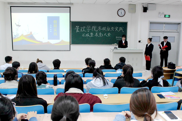 社会实践是大学生思想政治教育的重要环节。为深入学习贯彻习近平总书记关于青年成长成才的一系列重要论述,落实全国高校思想政治工作会议相关精神,引领和帮助广大青年学生在社会实践中更好地了解社会、服务社会。近日管理学院团委举办寒假社会实践汇报暨表彰大会,管理学院团委老师及2020级全体同学出席参加大会。