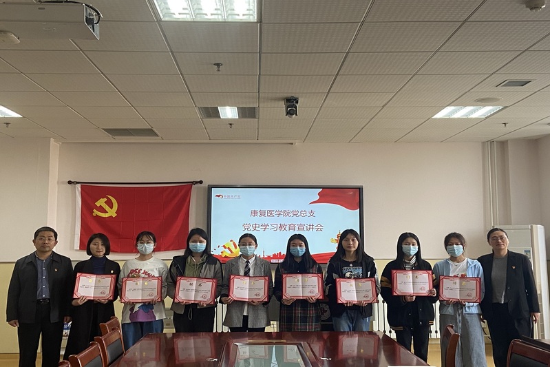 为深入开展党史学习教育,推动党史学习教育深入基层、深入师生、深入人心,确保学习教育实效,4月9日下午,康复医学院在学院党员活动室召开党史学习教育宣讲会暨党史学习教育青年宣讲团成立仪式。学院党总支书记邱玉刚主持会议,学院全体师生党员参加会议,学校党史学习教育督导组成员鞠学红、范源媛出席并给予全程指导。