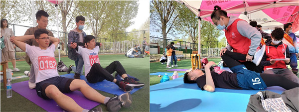 校运会期间,康复医学院“明天计划·康复未来”志愿者协会发挥专业特长设立了“运动员康复点”,针对运动员赛前热身和赛后放松提供一系列的志愿服务,效果颇佳,广受好评。