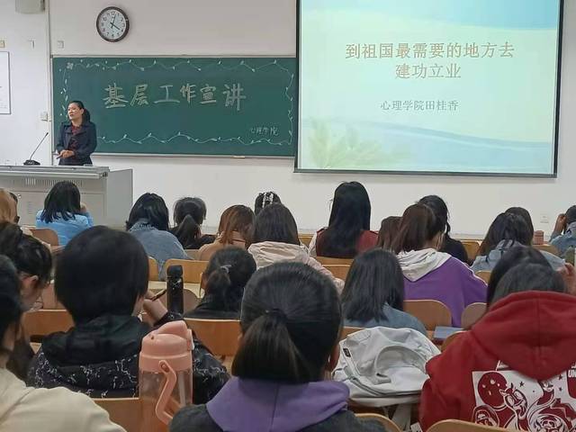 4月21日下午,心理学院于潍坊医学院浮烟山校区B202开展“到祖国最需要的地方去建功立业”基层就业工作宣讲活动,2018级全体学生积极参加。