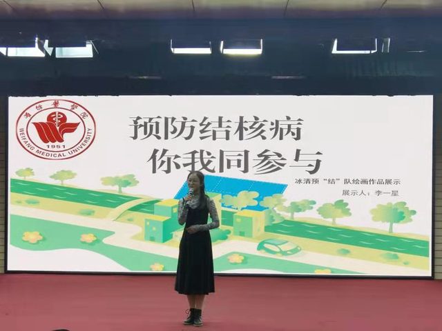 本次大赛自筹办起便备受关注,全校有800余名同学踊跃组队参加,以手工、书法、摄影、绘画、情景剧等形式,宣传结核病防治相关知识。经过前期选拔,共有来自五个院系的十支队伍进入决赛。决赛中,各队选手通过PPT演讲或情景剧表演,向同学们生动详细地讲解了结核病的病因、临床症状、预防治疗等有关知识。参赛者自信大方的表现,深深打动了现场评委和观众,获得大家的充分肯定。现场精彩纷呈,掌声不断,经过激烈角逐评选出一、二、三等奖。本大赛是我校第二届“爱在潍医,远离结核”防治结核病宣传教育系列活动之一,该系列活动还包括结核病防治知识讲座、线上知识竞赛、形象大使及志愿者选拔等内容。