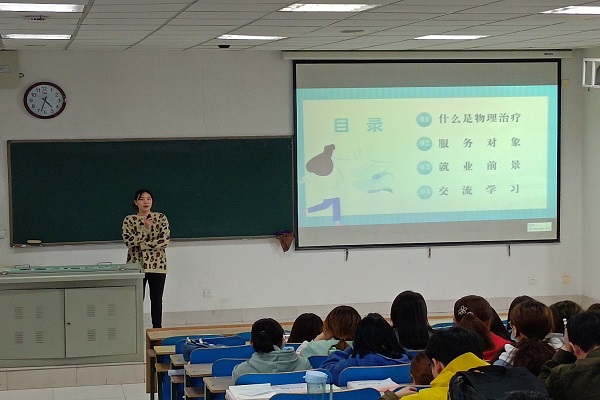 本次会议由作业治疗学方向任课老师邱越和物理治疗学方向任课老师傅天丽担任主讲。邱越老师重点介绍了作业治疗学的国内外背景与发展、方向定义、工作范围、服务对象、就业情况等内容,给大家详细讲解了我院作业治疗学这一新增本科专业的获批过程,并结合国内外康复治疗学专业的发展情况,指出作业治疗学具有非常好的发展前景。傅天丽老师详细讲解了物理治疗学的定义、治疗目的和治疗方式,介绍了物理治疗学不同专科的服务对象,并通过调研国内11家康复医疗机构的情况,给大家分析了目前康复治疗学分方向培养学生的就业前景。两位老师希望同学们以发展的眼光看待专业方向选择,要结合自身专长、兴趣爱好以及未来职业规划选择适合自己的专业方向,要学有所用,学有所成,切勿盲目从众。
