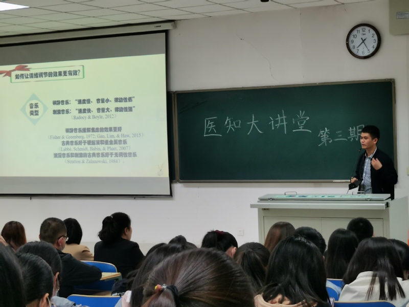 本期“医知大讲堂”讲座为同学们提供了理解情绪、放松自我的机会,增强了同学们关注自身心理健康的意识,提高了大学生心理健康水平。同学们纷纷表示,在以后的学习生活中,要运用在本次讲座中学到的音乐情绪调节方法,做到学用结合。