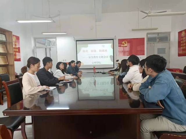 5月12日上午,心理学院于会议室召开安全教育主题会议,心理学院党总支书记刘宪亮、全体辅导员及学生代表参加会议。