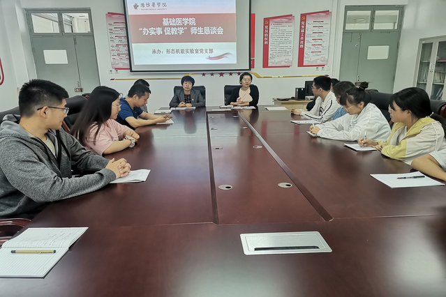 5月18日,基础医学院召开师生恳谈会,本次活动由形态机能实验室党支部承办。基础医学院党委书记楚新艳到会指导,党支部书记吴洪娟主持会议。