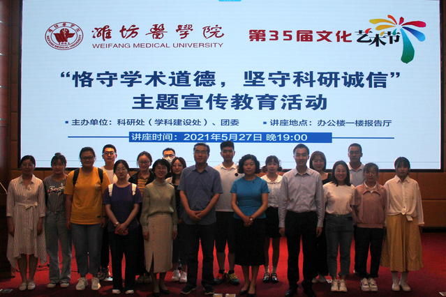 5月27日晚,科研处(学科建设处)、校团委举办的“恪守学术道德,践行科研诚信”专题讲座在办公楼一楼报告厅举行。大学生科技创新项目负责人、参与教师科研课题团队成员200余人,以及科研处(学科建设处)、校团委负责人和相关工作人员聆听了讲座。