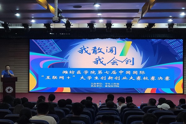6月17日晚,由校学生工作处主办,康复医学院承办的潍坊医学院第七届中国国际“互联网+”大学生创新创业大赛校赛决赛在图书馆演播厅举行。副院长张建华出席活动,各学院分管负责人、指导教师及学生代表参加活动。
