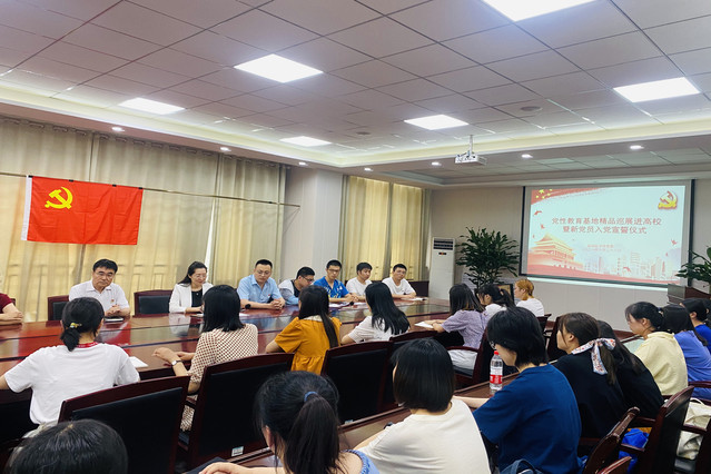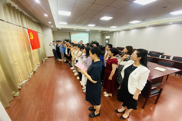 为庆祝中国共产党百年华诞,6月28日下午,基础医学院在敏行楼21317室开展新党员入党宣誓仪式暨性教育基地精品巡展进高校活动,基础医学院党委书记楚新艳、正处级组织员鞠学红和研究生党支部全体党员参加活动。