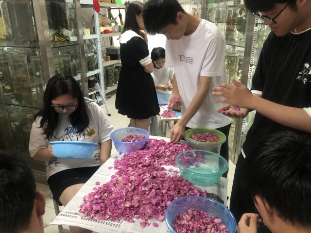 培训会上,指导教师王建立以“研究项目开题与开题报告的撰写”讲座开场,从大学生创新创业的类型、形式和途径入手,系统介绍研究项目的申报、评审、立项、研究内容和过程、结题和成果申报、成果开发利用等具体问题。4名项目获奖同学分享自己参与创新创业训练计划项目的经历和经验,对同学们提出的问题一一解答。到创新实践基地潍城区玫瑰大姐家庭农场参观,师生亲身感受潍城区新型生态农业发展成果。到药学院“习艺馆”学艺,指导教师手把手教学生制作玫瑰花茶、玫瑰酱以及栩栩如生的动植物标本等手工技艺。到药用植物园“识百草”,师生同劳动,学认中草药、做好除草维护,“第二课堂”收获颇丰。