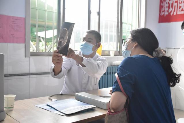 此次“三下乡”活动是继2019年“医疗技术扶贫”后又一次重要的基层医疗扶持。医学影像学院坚持专业培训,提升技能。在前期调研过程中,始终以“服务群众”为基本出发点,以“医疗技术”为实践切入点,以“乡村振兴”为成效落脚点,积极与昌乐县卫健局联系对接,充分掌握当地影像相关科室实际需求,邀请附属医院专家从超声、DR\CT胸片、常见病影像诊断及放射防护等4个方面,采取“专业理论+疑难案例”的方式,为近400名相关从业人员进行医学影像知识培训,由浅入深、鞭辟入里,提高了当地影像医师的业务水平和业务能力。学院坚持义诊服务,助民惠民。义诊团队到昌乐县宝都街道社区卫生服务中心,结合就诊村民的临床表现、问诊情况和体格检查结果给出指导意见,进行彩色超声多普勒健康检查,让居民们在家门口享受三甲医院的医疗服务。同学们为村民测量血压、血糖,并结合医学专长开展“投身乡村振兴、助力健康中国”政策宣讲。此次义诊活动共为300余名社区居民提供了健康查体和咨询服务,大家纷纷表示“感受到了实实在在的温暖”,义诊团队专业的业务知识和贴心的服务态度更是获得了大家的一致好评。