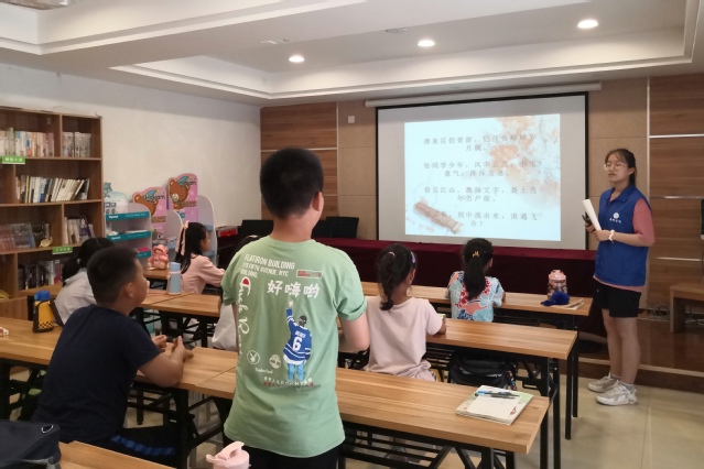 上好阅读文化课,诵读红色经典诗词。志愿者组织开展了“快乐阅读”和“诵读红色经典”活动,向同学们推荐阅读名著,带领同学们诵读红色经典诗词,同时以书法的形式写在了笔记本上,铭记峥嵘岁月,致敬建党百年。