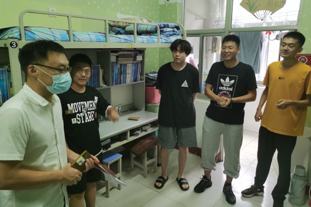 8月29日下午,麻醉学院党总支副书记李洪刚和辅导员老师深入学生宿舍走访看望学生,了解各年级学生返校情况,查看宿舍卫生、消防安全和疫情防控情况。