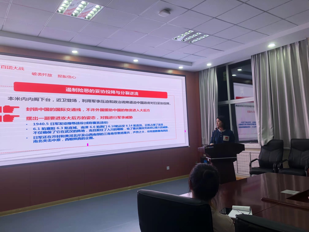 2020级卫生应急管理专业研究生党员王婉晨做了《百团大战-破袭歼敌、提振信心》主题党课,2020级公共卫生专业研究生党员段明雪做了《少年周恩来,梦想引领青春》主题党课。两位同学精心准备素材,穿插视频材料,听众仿佛置身于那个年代、那场战争,真切感受到共产党人顽强意志,感受少年周恩来心怀崇高理想,为中华之崛起而读书,感悟到理想信仰力量。
