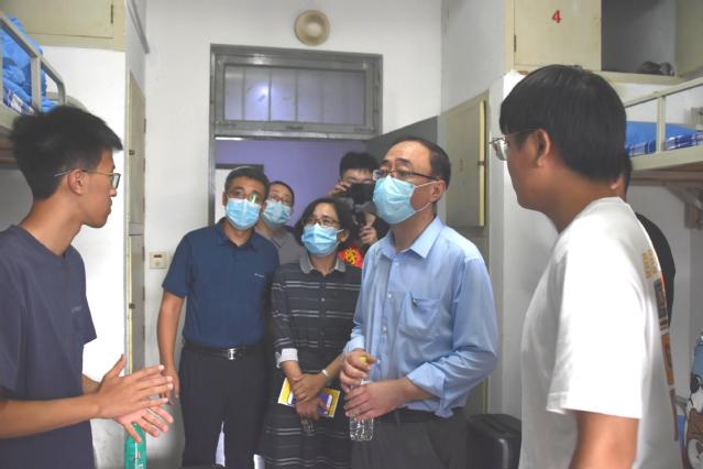 “开学第一课”主题教育活动中,学院党总支书记刘建兰、院长董鹏和副书记陈晓云走访宿舍,了解学生生活状况,询问其在校感受和需求。走访过程中,一省外新生正在与因疫情防控无法入校的父母进行视频,家长担心学生的生活起居,害怕学生不适应学校环境,刘建兰当即在线上向家长介绍了校内设施、新生入学教育和学生日常活动等情况,在细致入微的解说后,父母放下了悬着的心,嘱托孩子在校要信任老师,多跟老师交流,找到人生的目标和方向。董鹏叮嘱大家要志存高远、深学深思深研专业,为成为一名合格医生打好基础、做足准备。辅导员通过主题班会讲解习近平总书记“七一讲话”重要精神,梳理《高等学校新冠肺炎疫情防控技术方案(第四版)》,提醒大家落实疫情防控各项措施,就学风建设、校史校情,消防安全,餐饮浪费等问题与同学们展开讨论,并向同学们提出严格遵守纪律、提高安全意识、坚定理想信念的要求,希望大家争做乐学、会学、博学的新时代青年人。