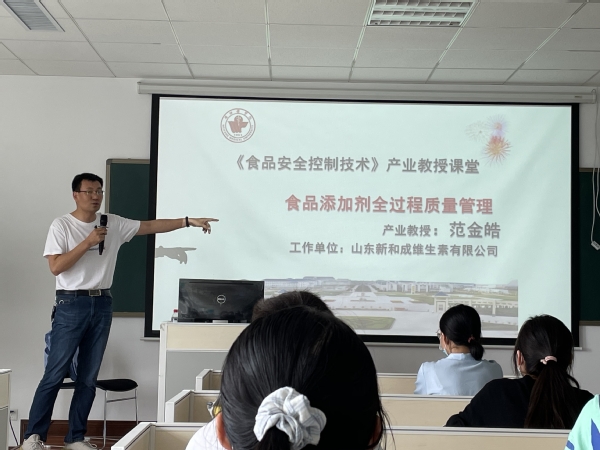 瑞福油脂股份有限公司董事长崔瑞福和山东新和成维生素有限公司副总经理范金皓作为我校公共卫生学院产业教授,分别带领学生观摩其企业具体生产工艺,并以实际生产过程为例,为学生讲授食品加工过程中的安全控制技术。