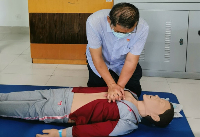 3位党员同志详细讲解了CPR的8个步骤,即评估现场,判断环境安全、判断意识、启动急救反应系统、判断呼吸、胸外心脏按压、打开气道、人工呼吸和尽早电除颤。并通过真人亲自示范和心肺复苏模拟人进行实际操作的演示和指导。参加培训的教师学习热情高涨,虚心请教各种现场问题,并积极参与模拟人训练。大家都希望自己熟练掌握这一急救技术,将来可以更好的应对各种突发状况,服务社会。