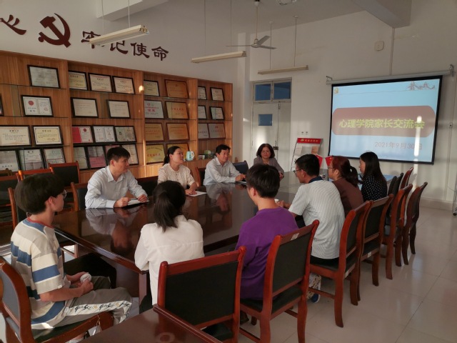 9月30日,心理学院学生家长交流会在学院会议室举行,心理学院党总支书记刘宪亮、院长王艳郁、教研办、辅导员和部分学生家长、同学参加了交流会。