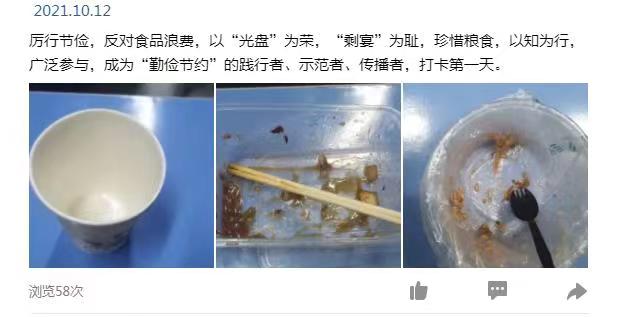 活动中,大家共同学习了习近平总书记关于制止餐饮浪费行为的重要指示精神和相关文件,观看了演讲视频《全球每年1/3食物被浪费,人类如何靠嘴守护未来?》。最后,在“倡导厉行节约、反对奢侈浪费”倡议书上签字。另外,还启动了“一日三餐光盘打卡活动”,党员带头践行“光盘行动”,将一日三餐光盘行动打卡拍照,在QQ、微信等社交平台分享“光盘”照片。